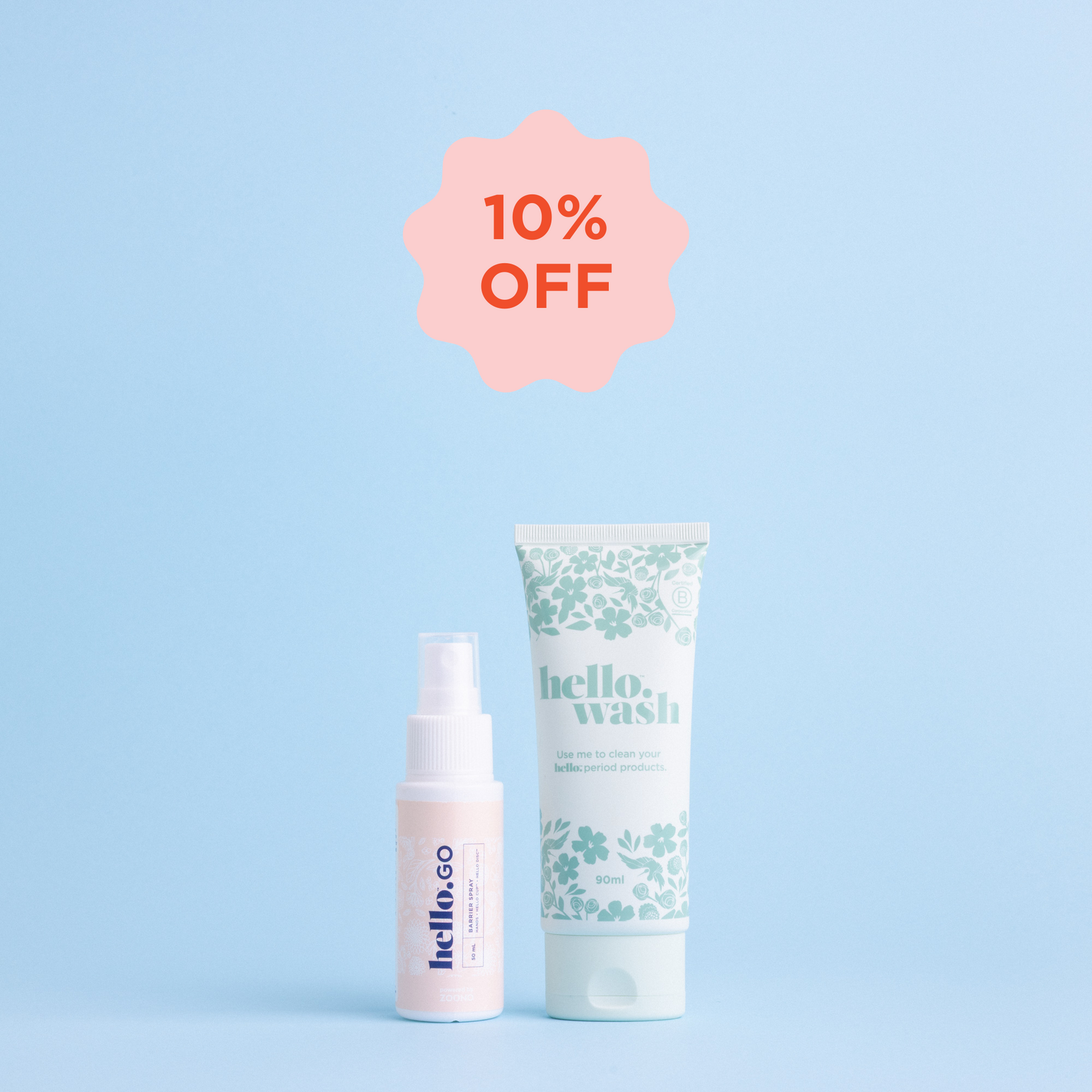 - Hello Go - a handy 'on the go' cleaning spray for both your menstrual disc and your hands.
