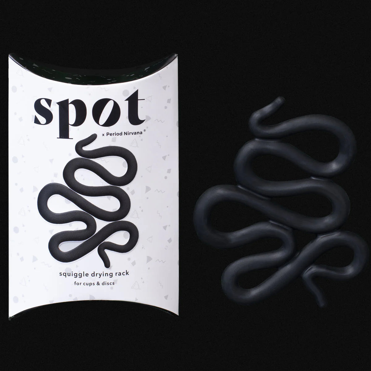 Designed by our friend Kim Rosas from Period Nirvana, the Spot squiggle drying rack allows your period cup or period disc to air dry in style.