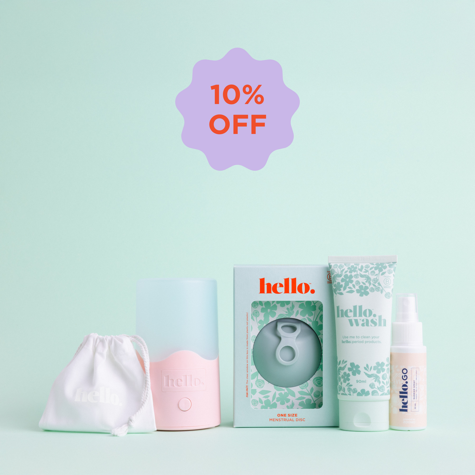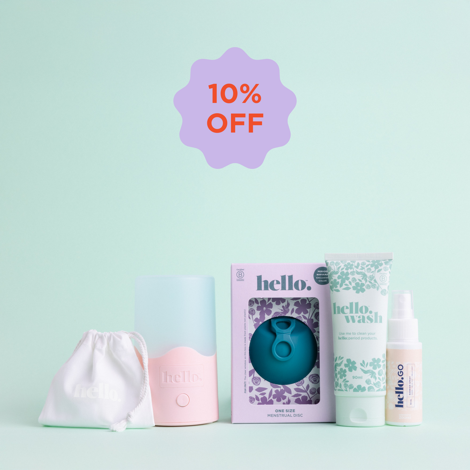 Say 'hello' to better periods with our Hello Disc Starter Bundle. Everything you need to kickstart menstrual disc life.